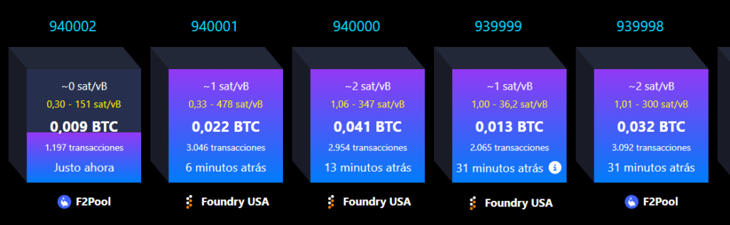 Según el ritmo promedio de producción de bloques —aproximadamente uno cada 10 minutos—, se estimaba que el evento ocurriría entre este domingo y hoy lunes. En el siguiente gráfico se observa que el bloque fue minado por Foundry USA.